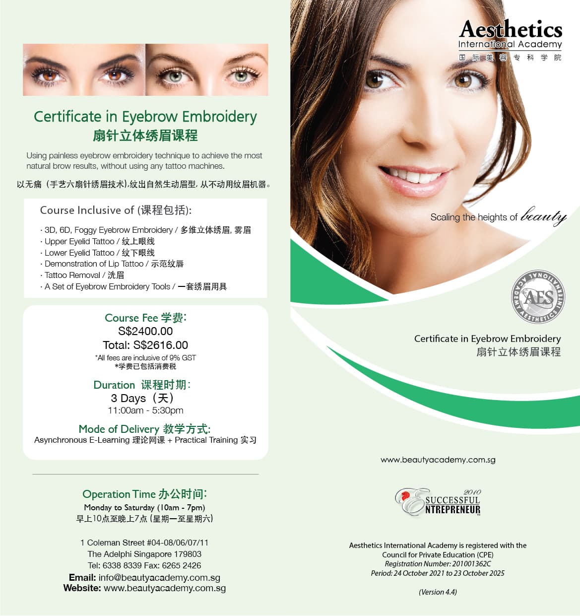 Nil. Anyone interested in Certificate in Eyebrow Embroidery are welcome to join in.