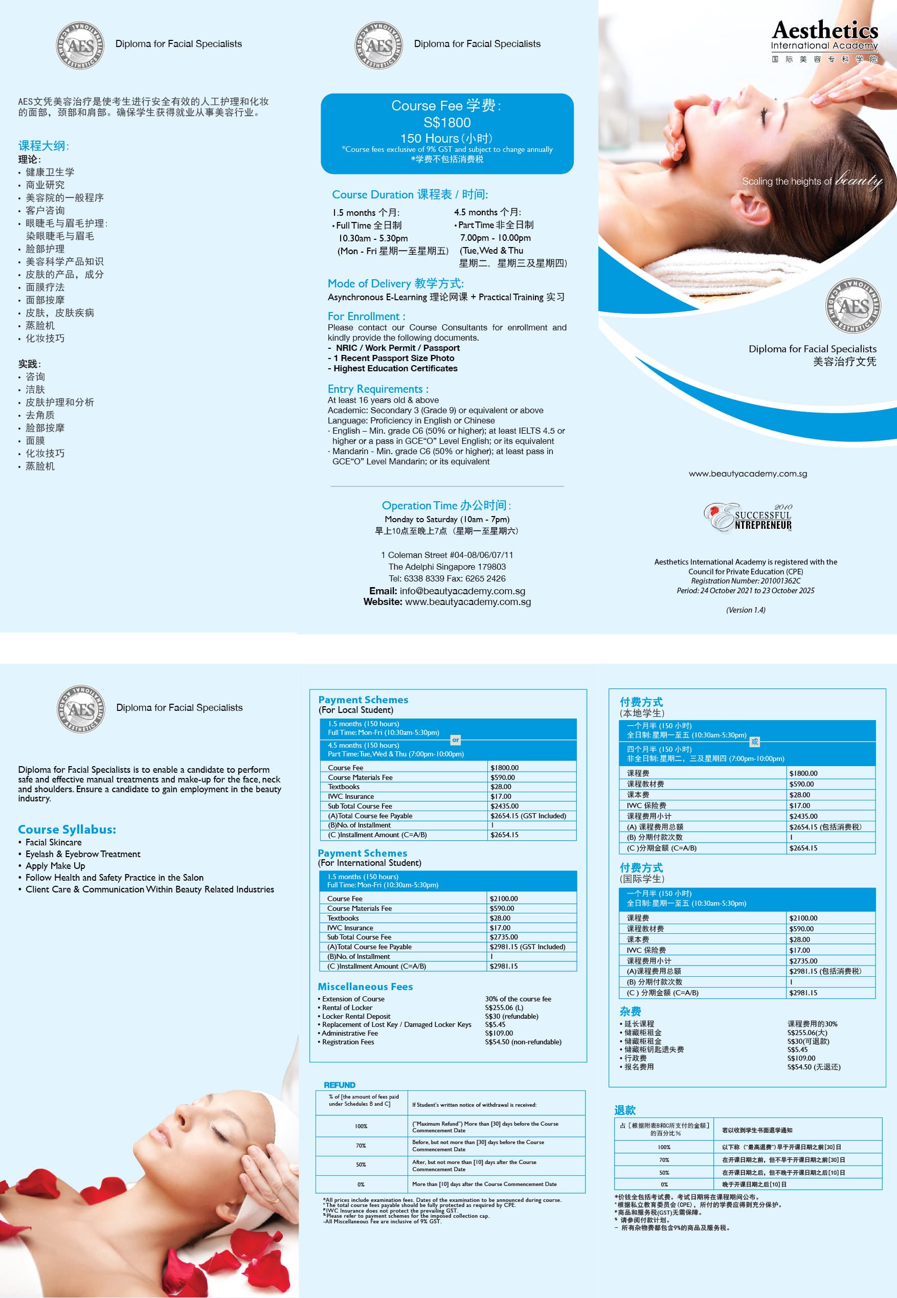 AES Diploma for Facial Specialists enables a candidate to perform basic make-up, safe and effective facial treatments for the face, neck and shoulders.
