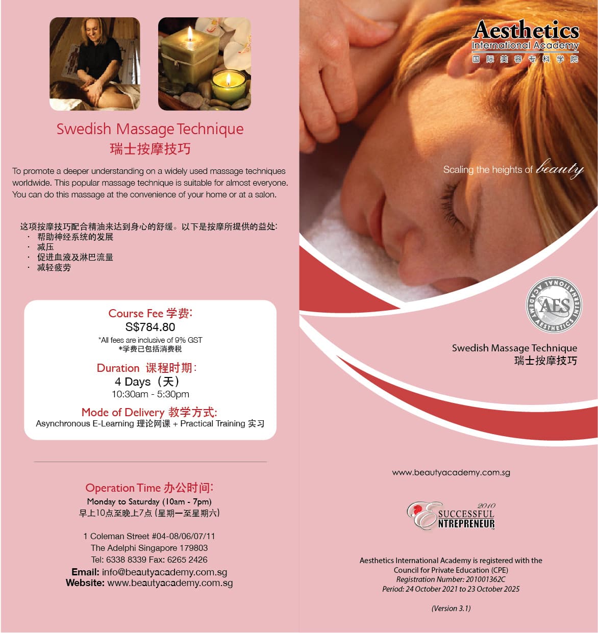 Awarded by Aesthetics International Academy Singapore.