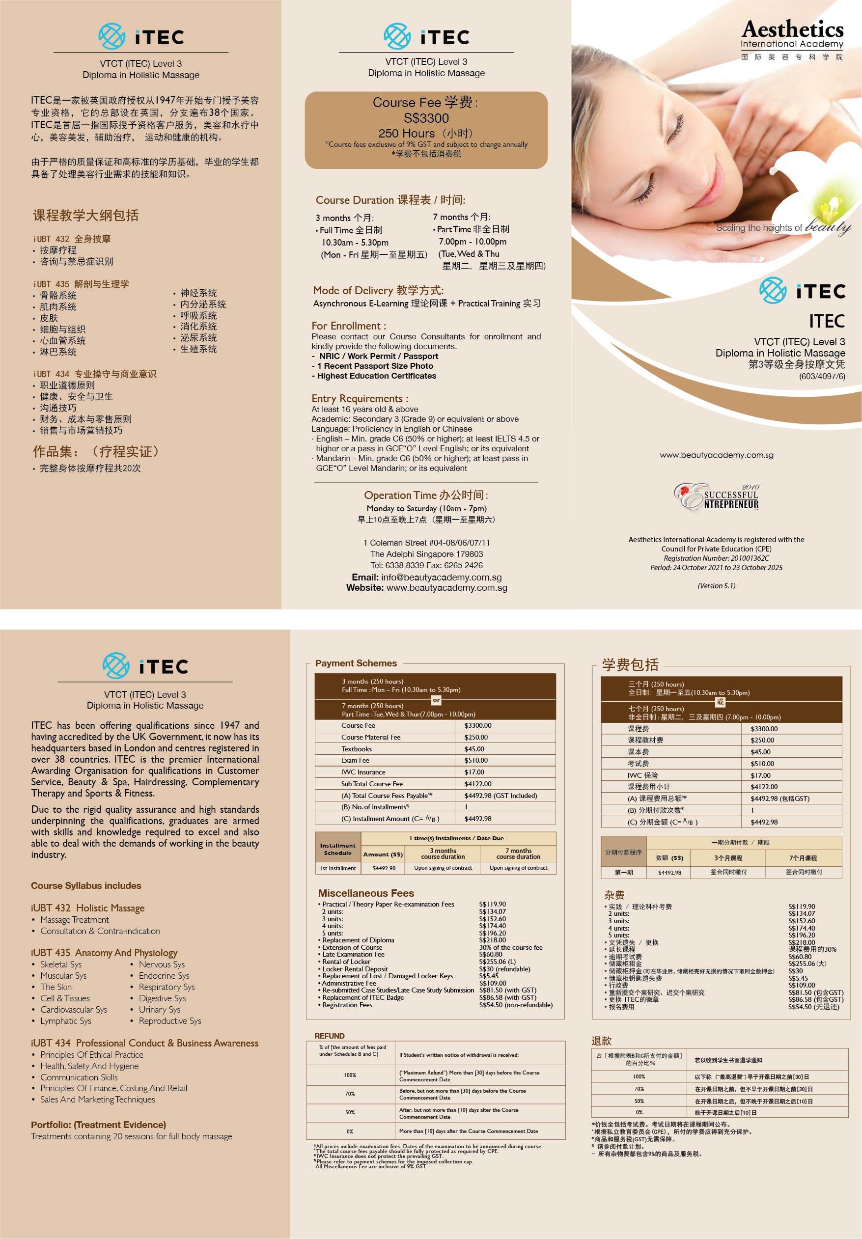 Students who successfully complete the examination will be awarded with the (ITEC) Level 3 Diploma by International Therapy Examination Council, UK.